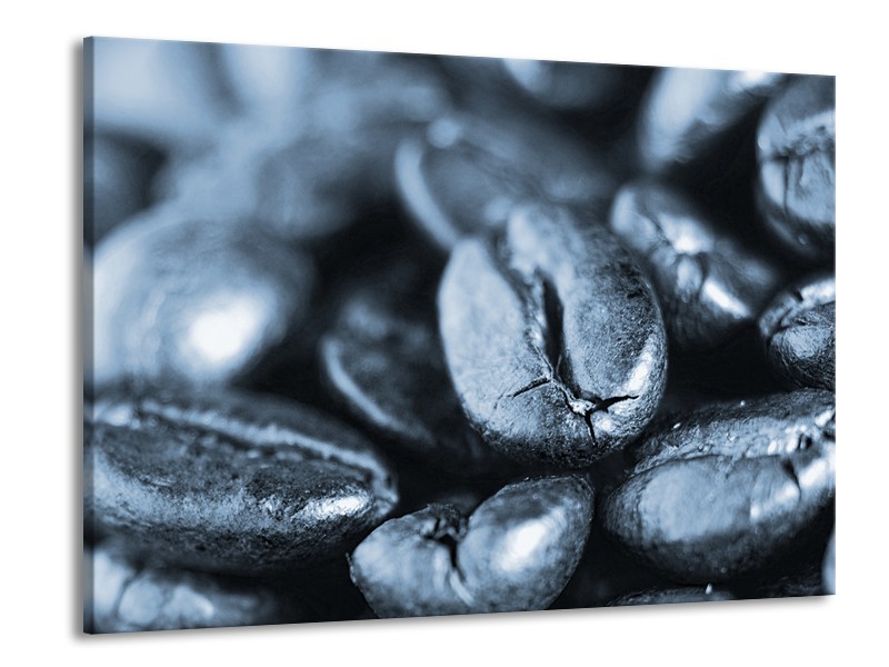 Glasschilderij Koffiebonen, Keuken | Blauw, Grijs | 100x70cm 1Luik