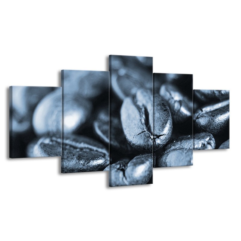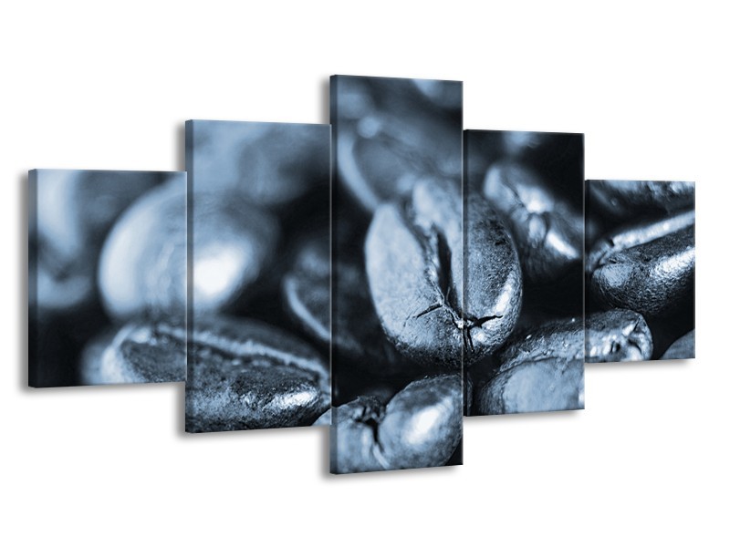 Glasschilderij Koffiebonen, Keuken | Blauw, Grijs | 150x80cm 5Luik