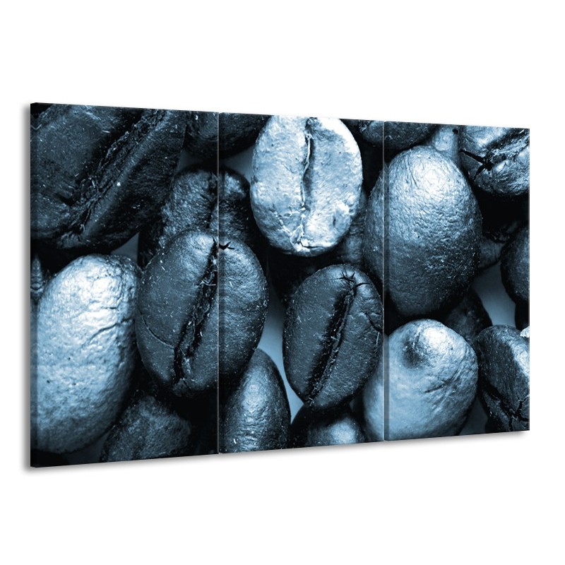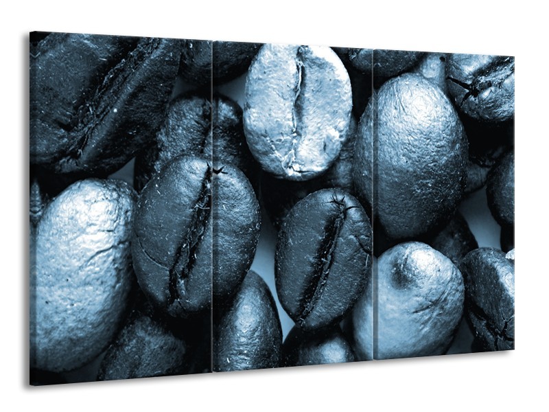 Glasschilderij Koffiebonen, Keuken | Blauw, Grijs | 165x100cm 3Luik