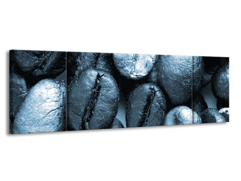 Glasschilderij Koffiebonen, Keuken | Blauw, Grijs | 170x50cm 3Luik