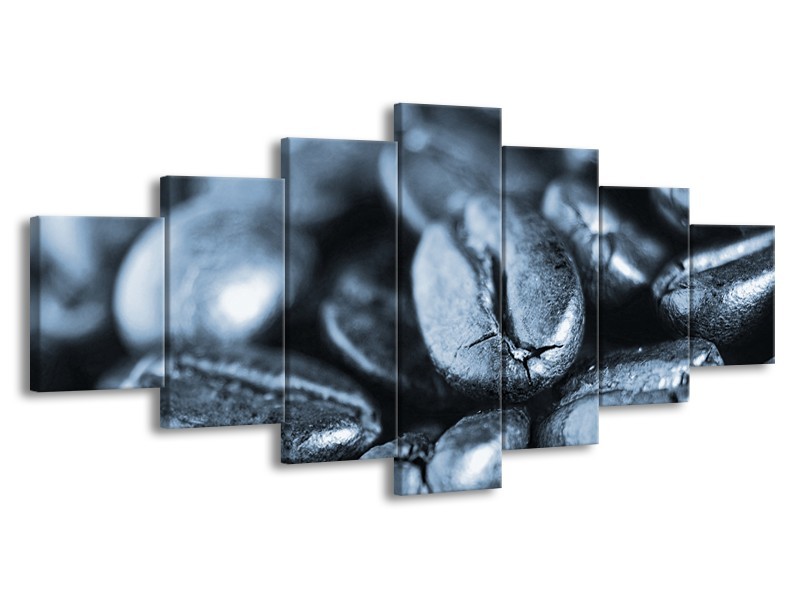 Glasschilderij Koffiebonen, Keuken | Blauw, Grijs | 210x100cm 7Luik