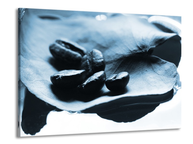 Glasschilderij Koffiebonen, Keuken | Blauw, Wit | 100x70cm 1Luik