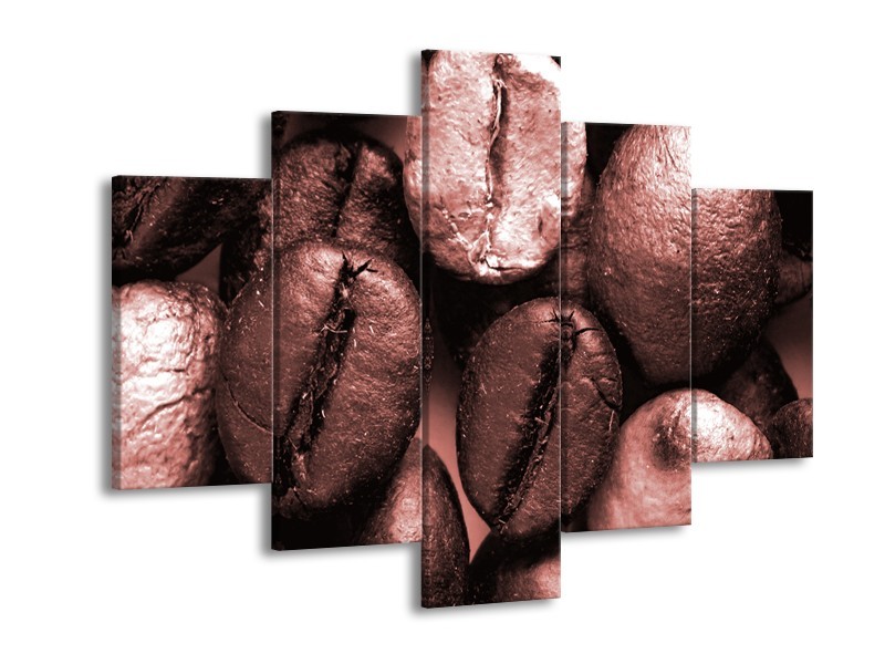 Glasschilderij Koffiebonen, Keuken | Bruin, Rood | 150x105cm 5Luik