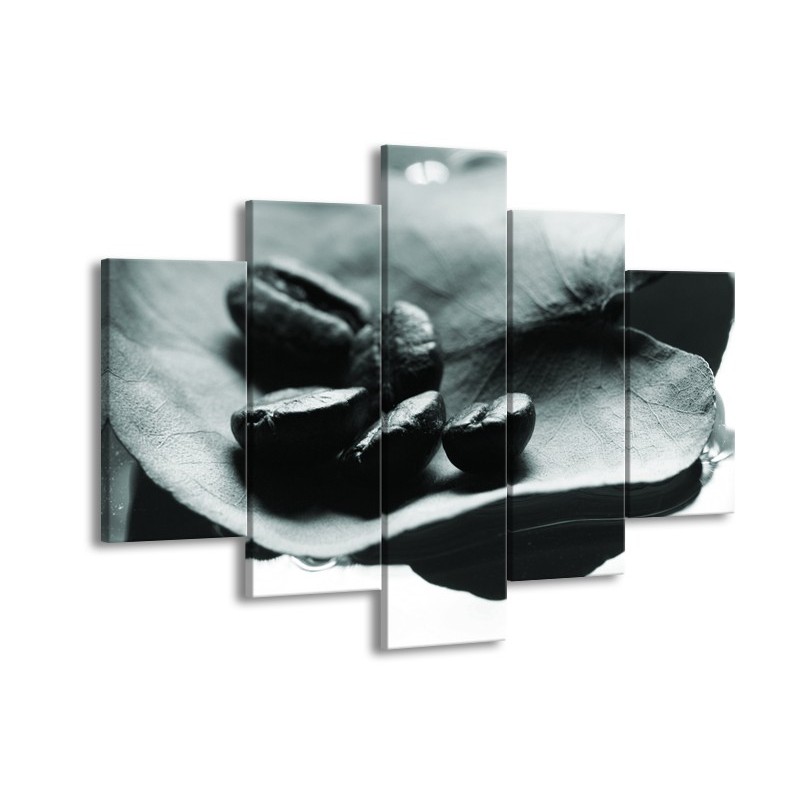 Glasschilderij Koffiebonen, Keuken | Grijs, Groen | 150x105cm 5Luik