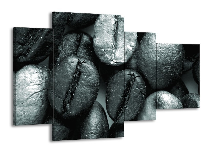 Glasschilderij Koffiebonen, Keuken | Grijs, Groen, Zwart | 120x75cm 4Luik