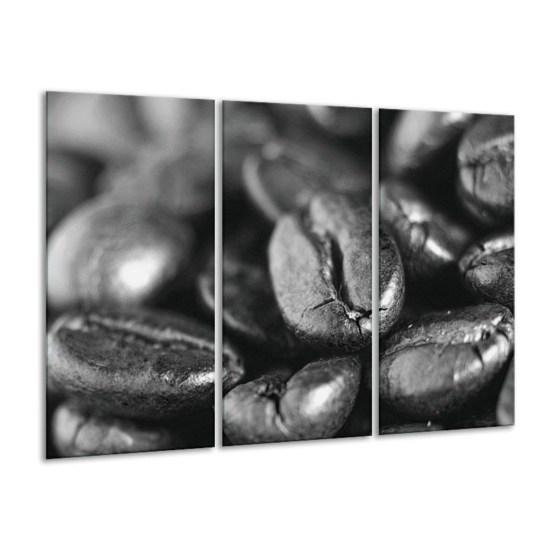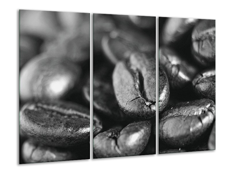 Glasschilderij Koffiebonen, Keuken | Grijs, Zwart | 120x80cm 3Luik