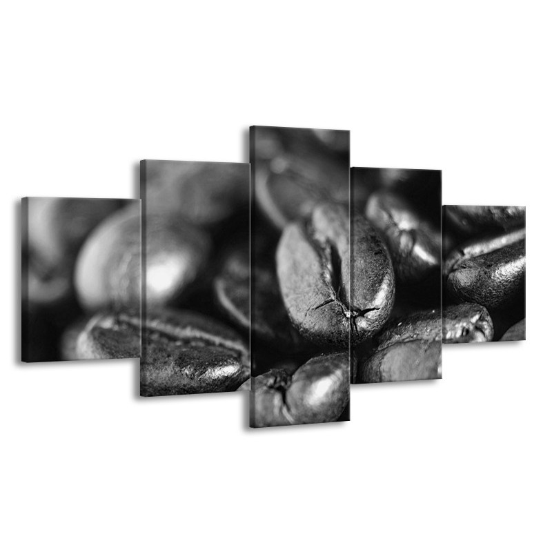 Glasschilderij Koffiebonen, Keuken | Grijs, Zwart | 150x80cm 5Luik