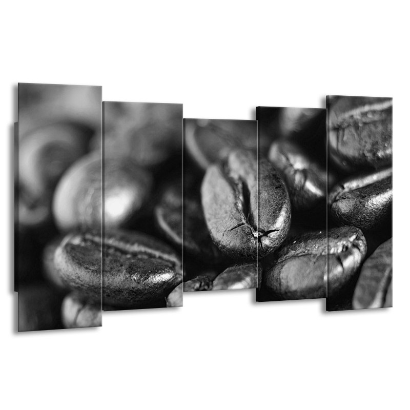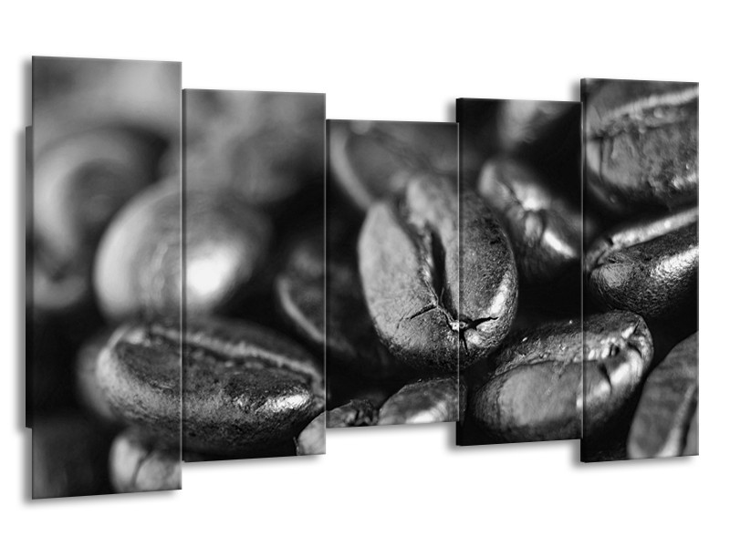 Glasschilderij Koffiebonen, Keuken | Grijs, Zwart | 150x80cm 5Luik