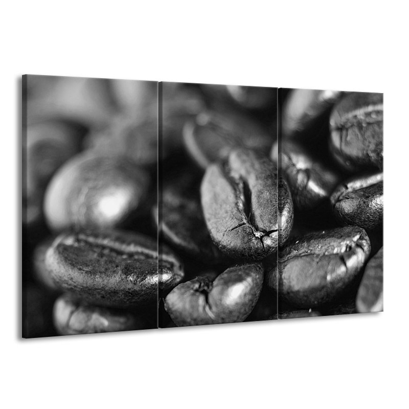 Glasschilderij Koffiebonen, Keuken | Grijs, Zwart | 165x100cm 3Luik