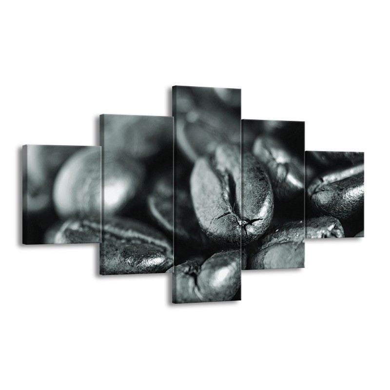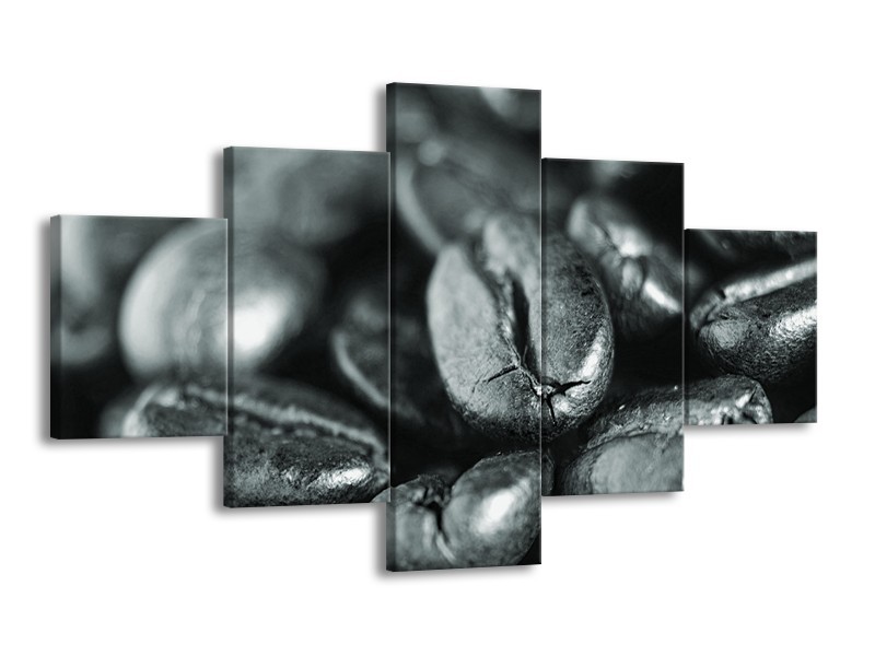 Glasschilderij Koffiebonen, Keuken | Grijs, Zwart, Groen | 125x70cm 5Luik