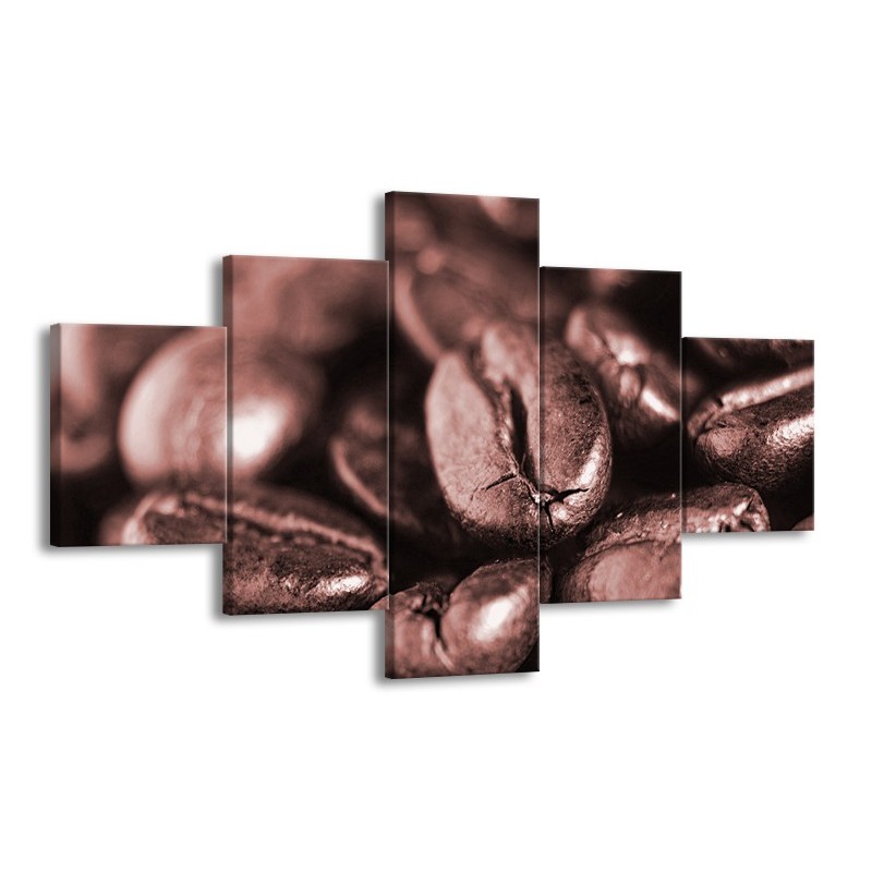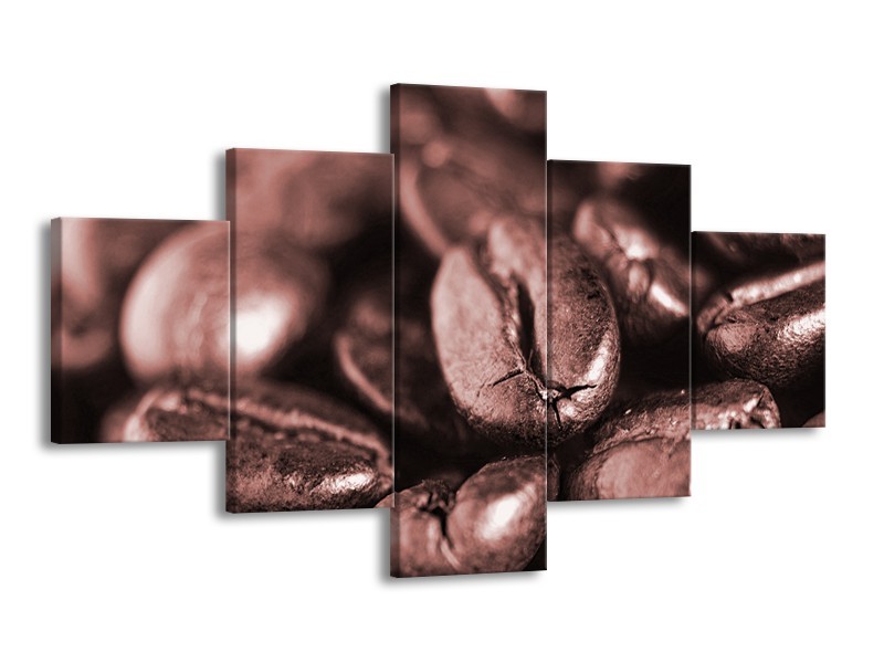 Glasschilderij Koffiebonen, Keuken | Rood, Bruin | 125x70cm 5Luik