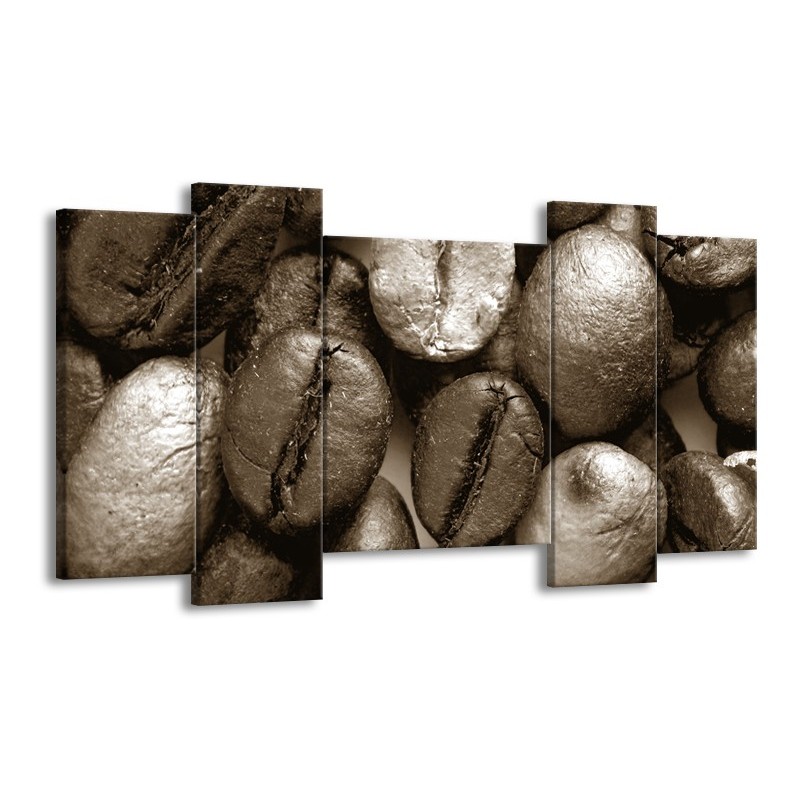 Glasschilderij Koffiebonen, Keuken | Sepia | 120x65cm 5Luik