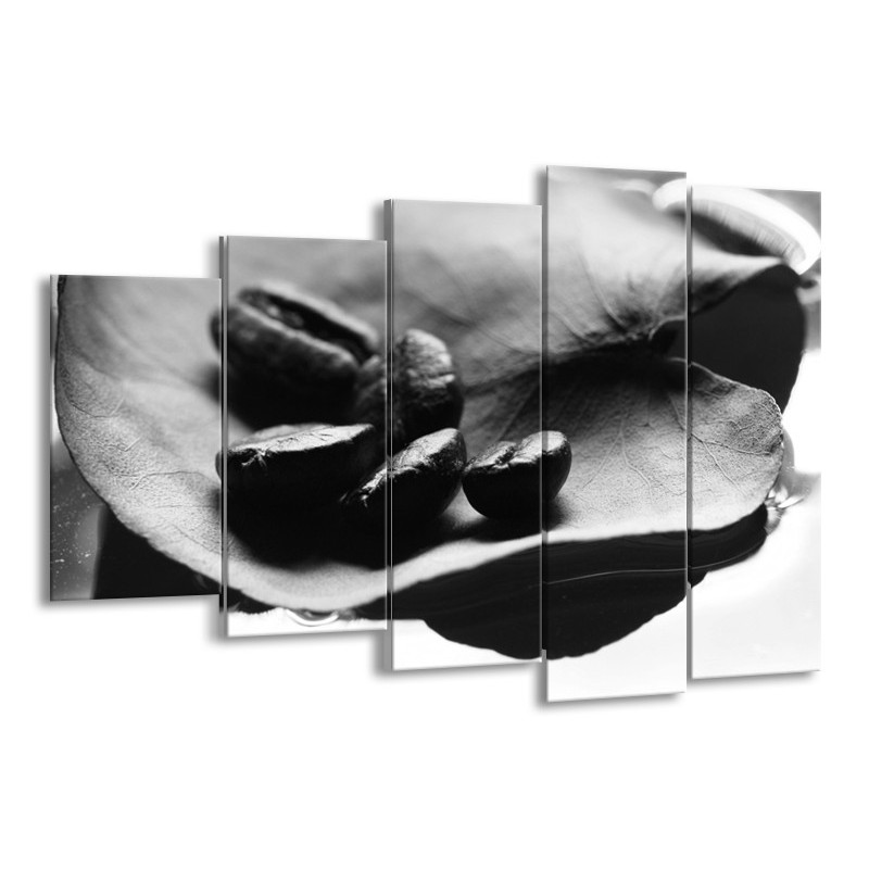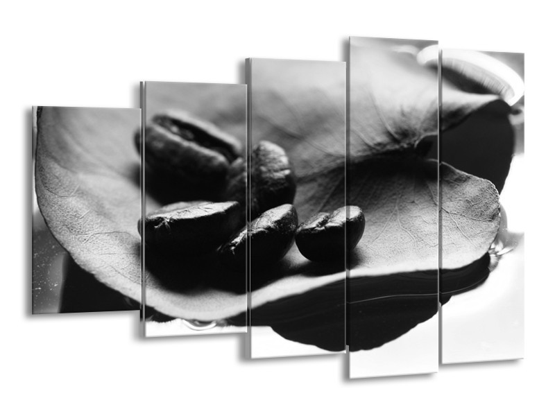 Glasschilderij Koffiebonen, Keuken | Zwart, Wit, Grijs | 150x100cm 5Luik