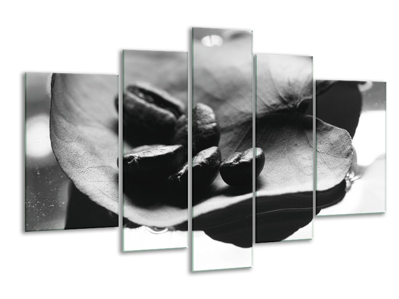Glasschilderij Koffiebonen, Keuken | Zwart, Wit, Grijs | 170x100cm 5Luik