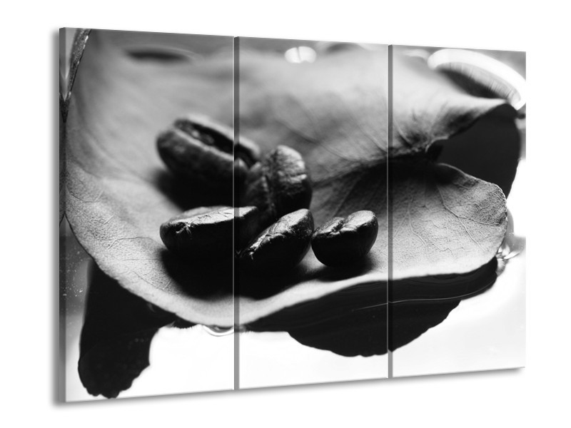 Glasschilderij Koffiebonen, Keuken | Zwart, Wit, Grijs | 60x90cm 3Luik