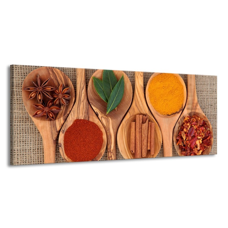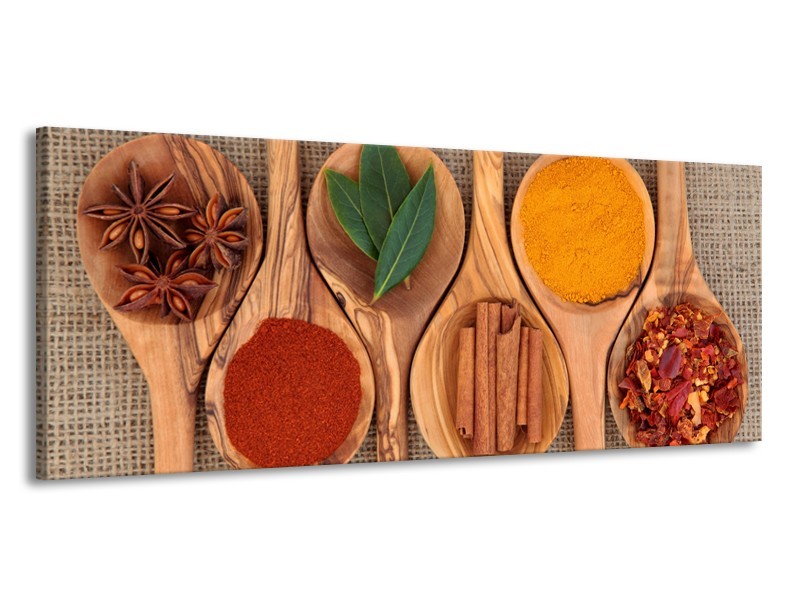 Glasschilderij Kruiden, Keuken | Bruin, Geel | 145x58cm 1Luik