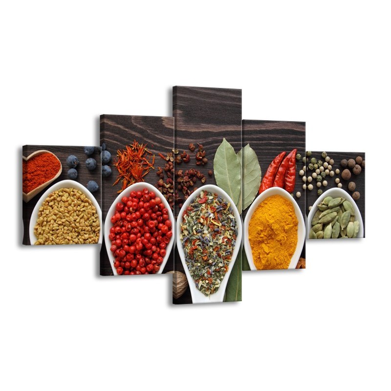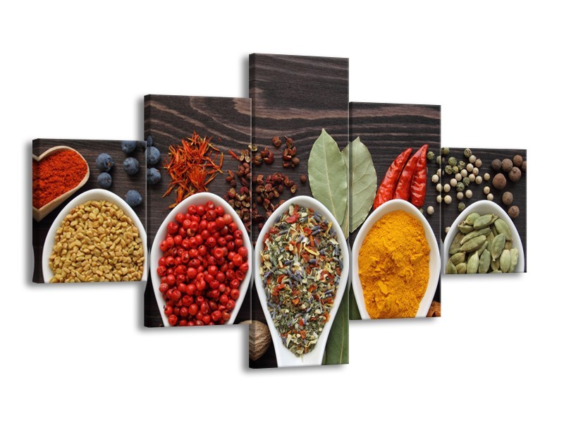 Glasschilderij Kruiden, Keuken | Bruin, Rood, Geel | 125x70cm 5Luik