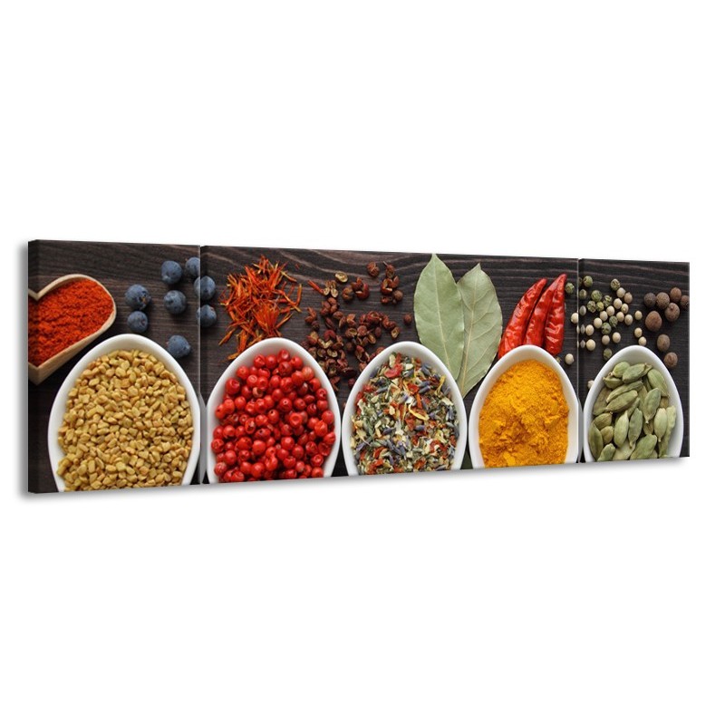 Glasschilderij Kruiden, Keuken | Bruin, Rood, Geel | 170x50cm 3Luik