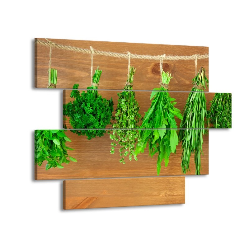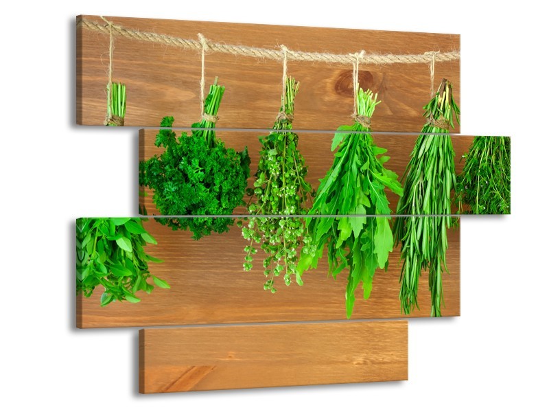 Glasschilderij Kruiden, Landelijk | Bruin, Groen | 115x85cm 4Luik