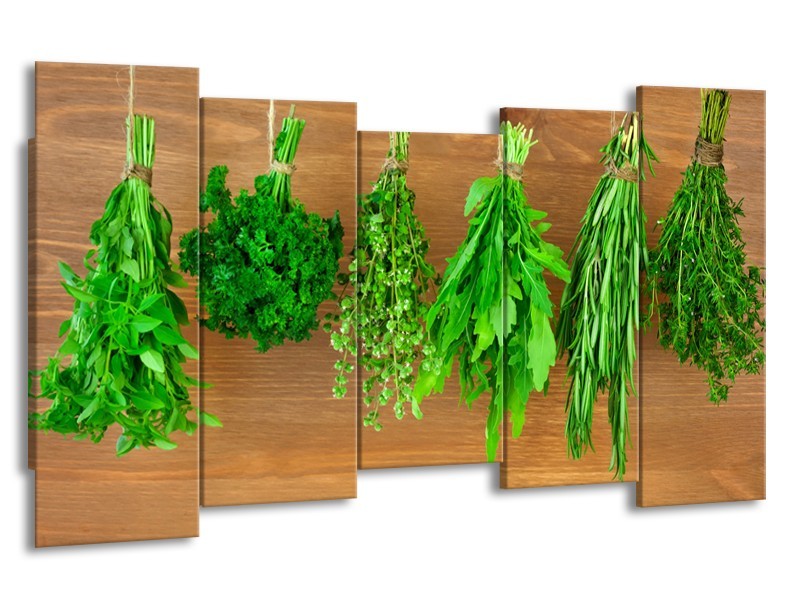 Glasschilderij Kruiden, Landelijk | Bruin, Groen | 150x80cm 5Luik