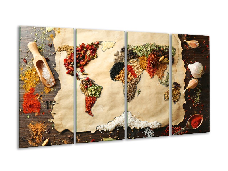 Glasschilderij Kruiden, Wereldkaart | Bruin, Crème | 160x80cm 4Luik
