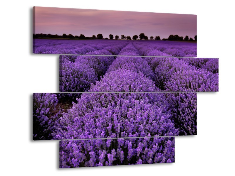 Glasschilderij Lavendel, Landelijk | Paars | 115x85cm 4Luik