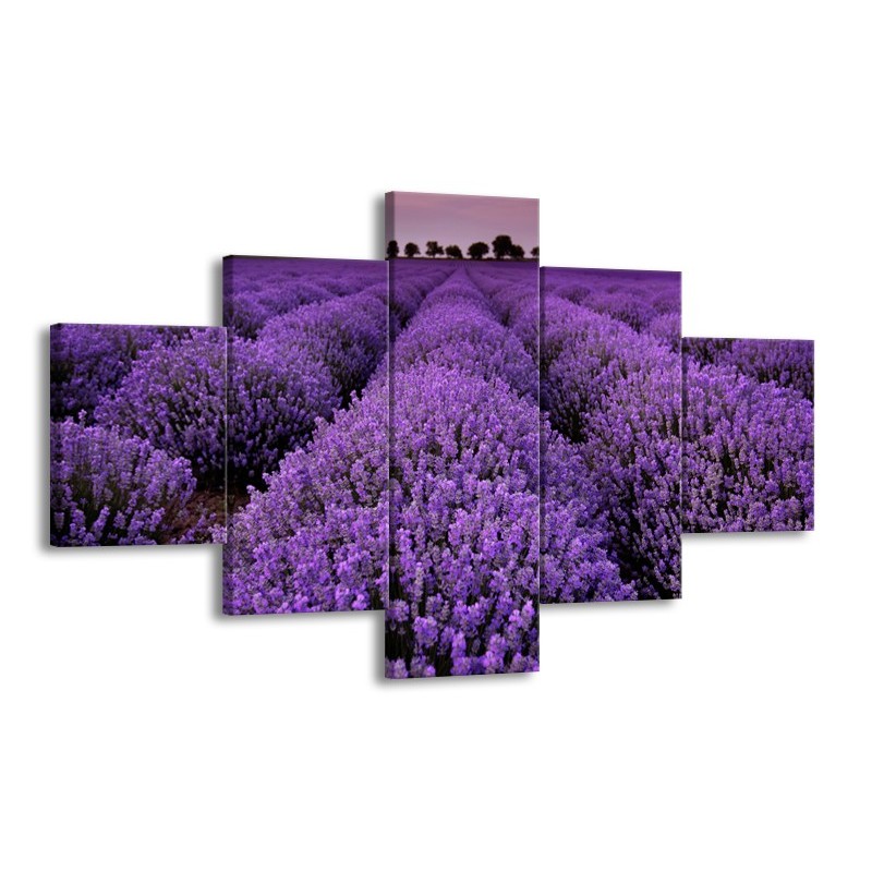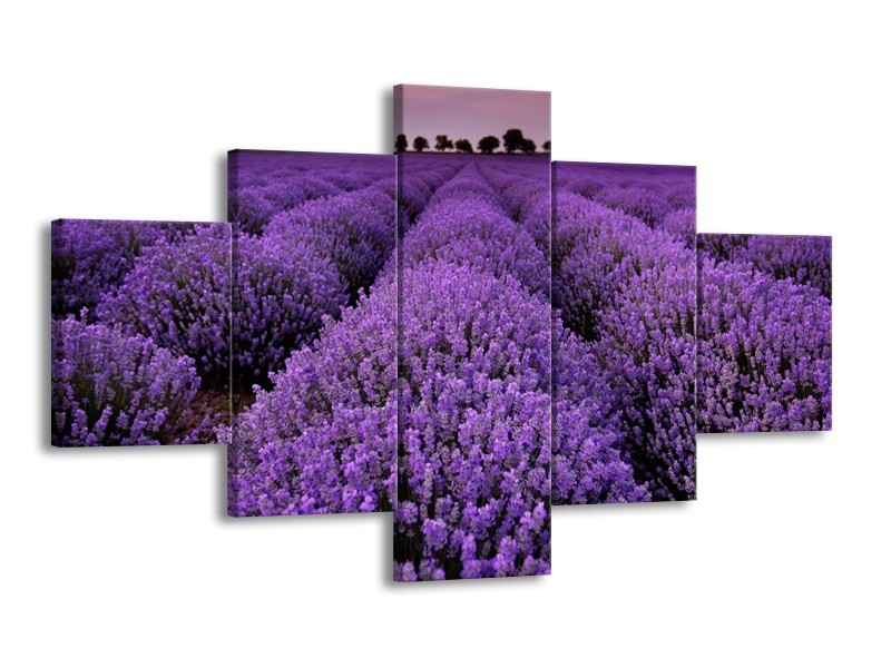Glasschilderij Lavendel, Landelijk | Paars | 125x70cm 5Luik