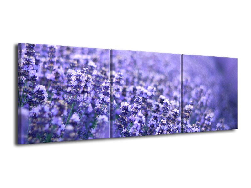 Glasschilderij Lavendel, Landelijk | Paars, Blauw | 120x40cm 3Luik