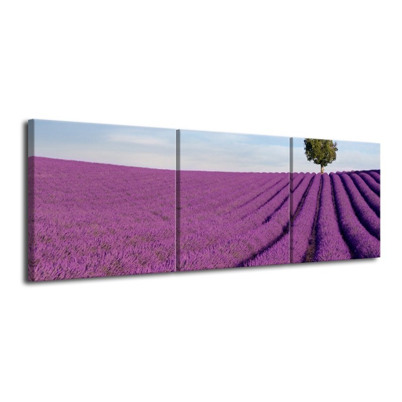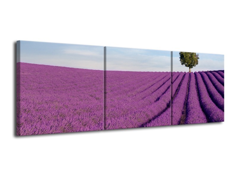 Glasschilderij Lavendel, Landelijk | Paars, Blauw, Groen | 120x40cm 3Luik