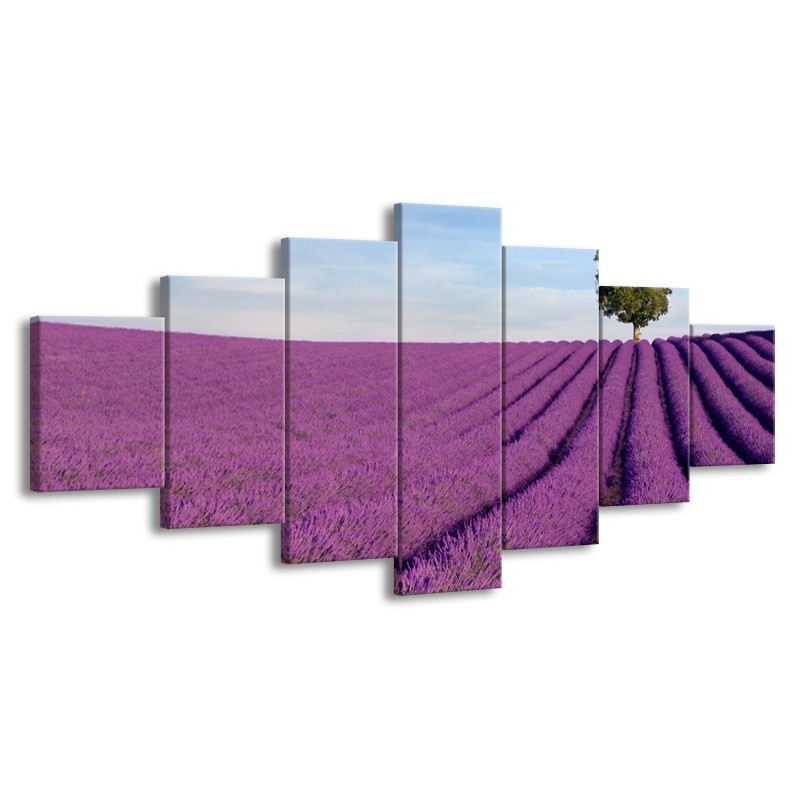 Glasschilderij Lavendel, Landelijk | Paars, Blauw, Groen | 210x100cm 7Luik
