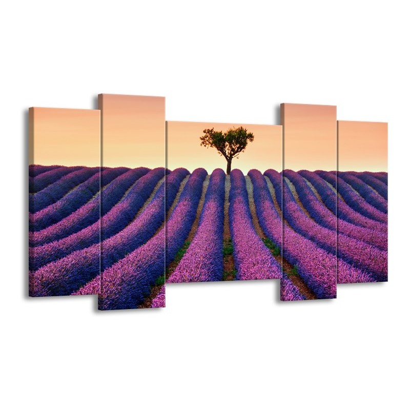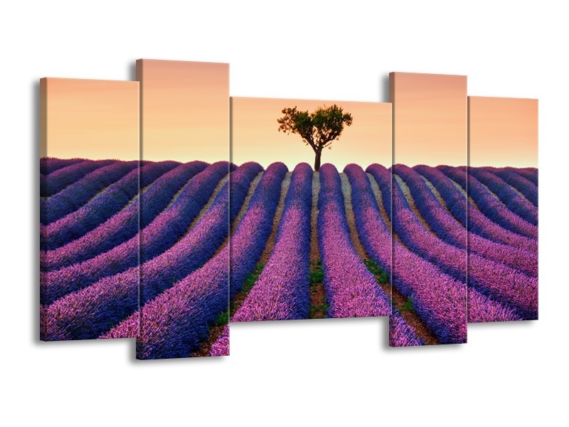 Glasschilderij Lavendel, Landelijk | Paars, Crème | 120x65cm 5Luik