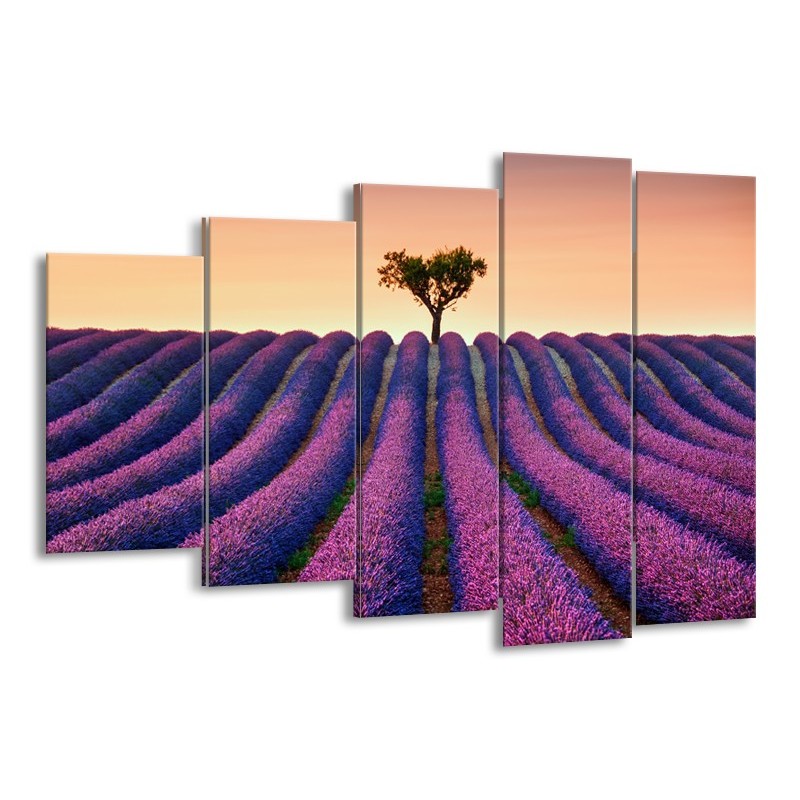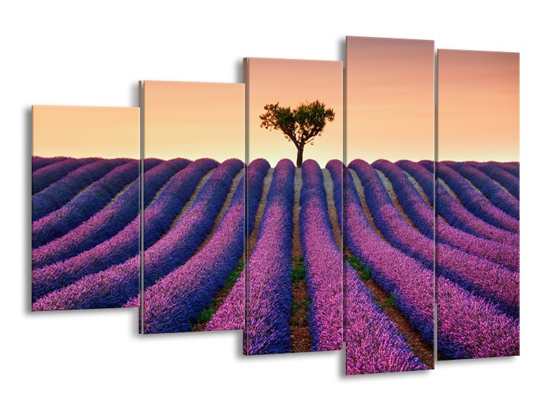 Glasschilderij Lavendel, Landelijk | Paars, Crème | 150x100cm 5Luik