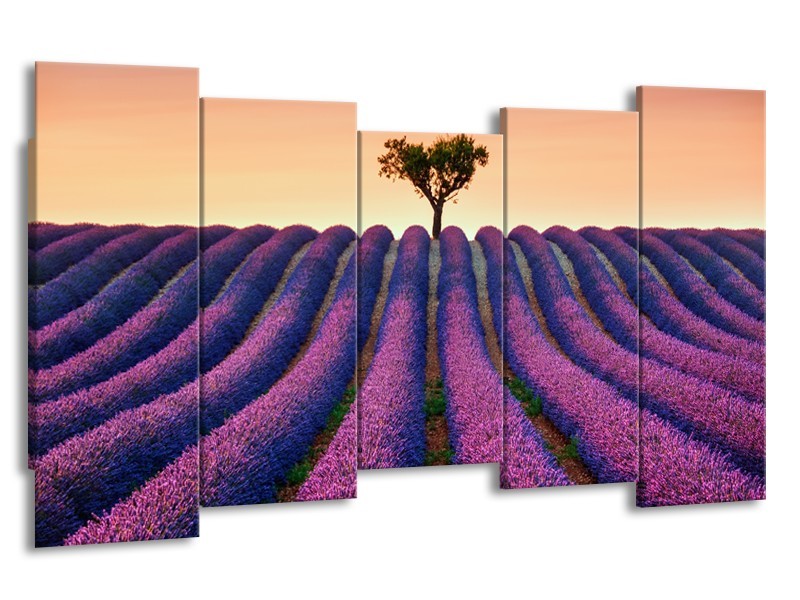 Glasschilderij Lavendel, Landelijk | Paars, Crème | 150x80cm 5Luik