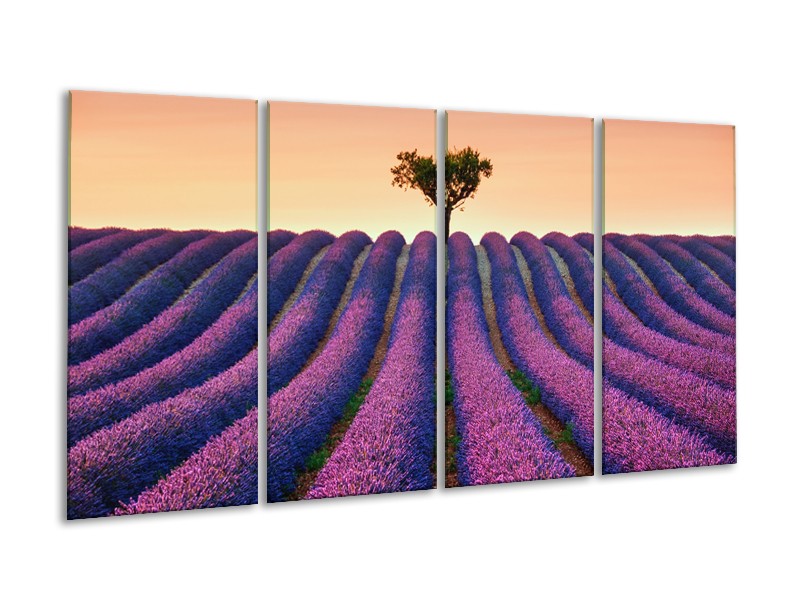 Glasschilderij Lavendel, Landelijk | Paars, Crème | 160x80cm 4Luik