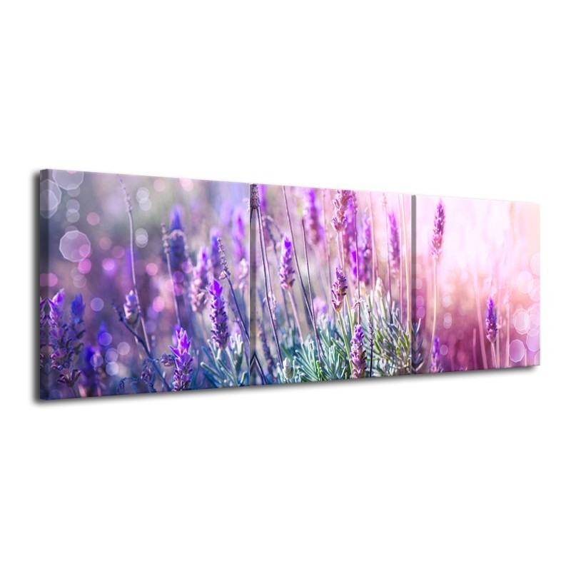 Glasschilderij Lavendel, Landelijk | Paars, Crème, Roze | 120x40cm 3Luik