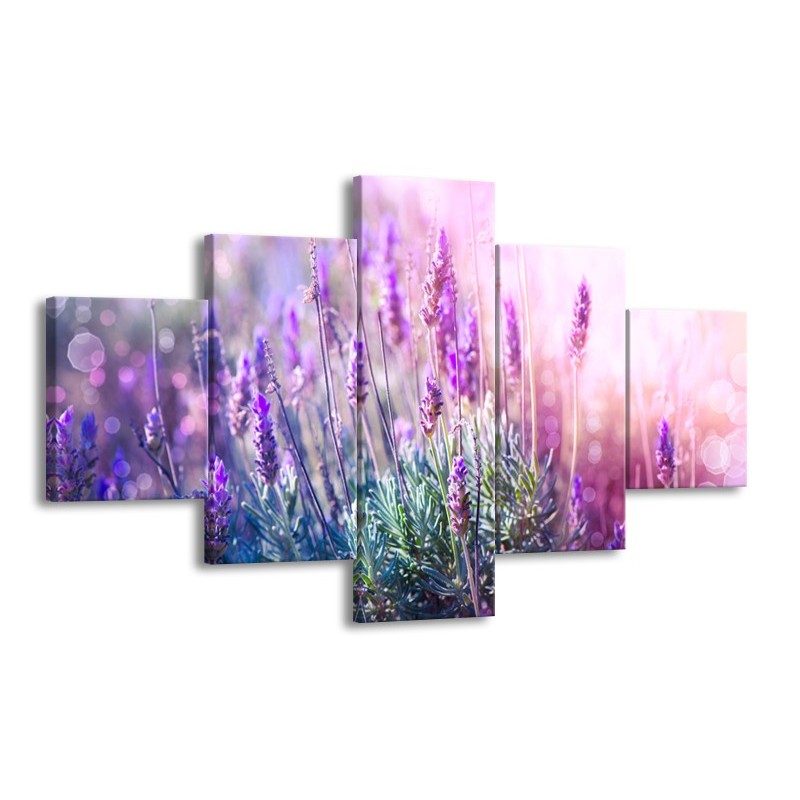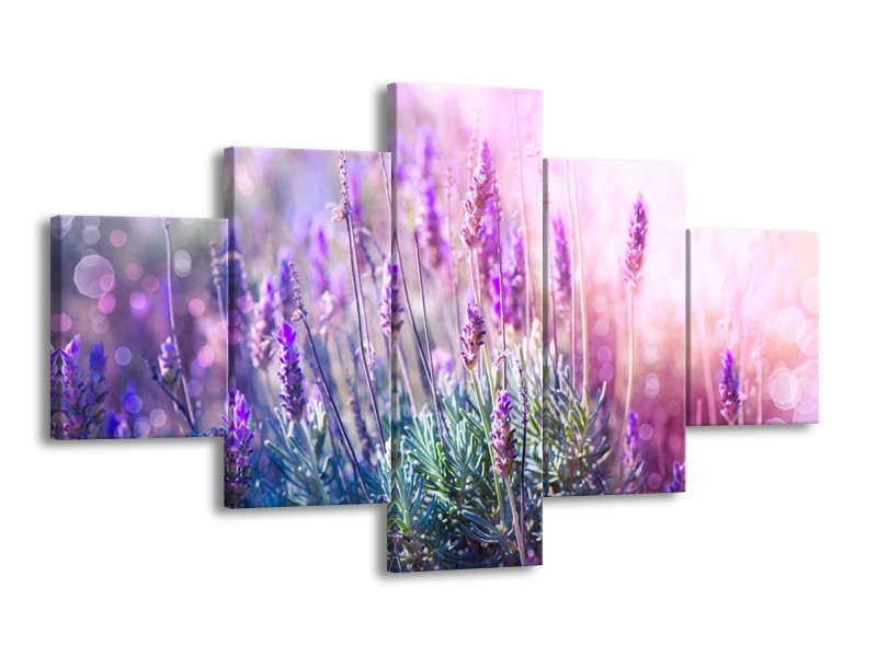 Glasschilderij Lavendel, Landelijk | Paars, Crème, Roze | 125x70cm 5Luik