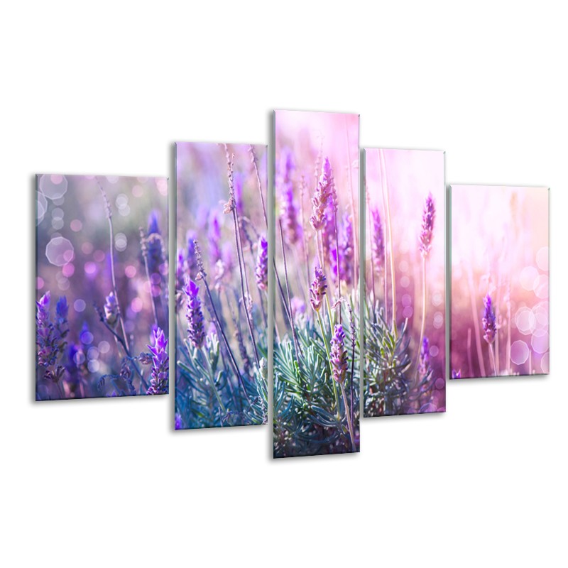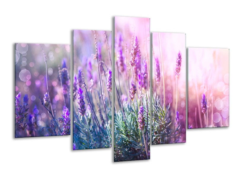 Glasschilderij Lavendel, Landelijk | Paars, Crème, Roze | 170x100cm 5Luik