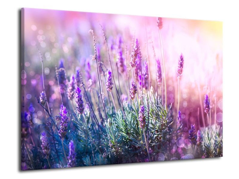 Glasschilderij Lavendel, Landelijk | Paars, Crème, Roze | 70x50cm 1Luik