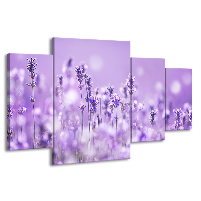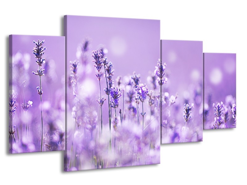 Glasschilderij Lavendel, Landelijk | Paars, Wit | 160x90cm 4Luik