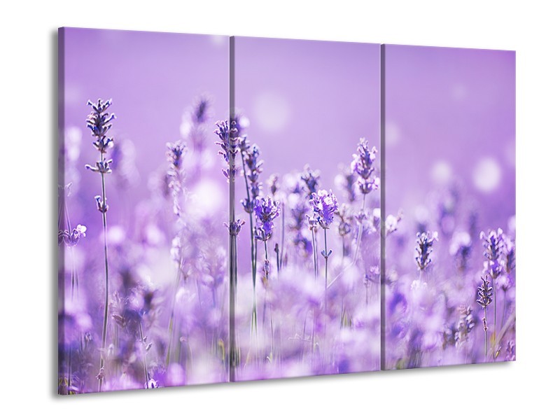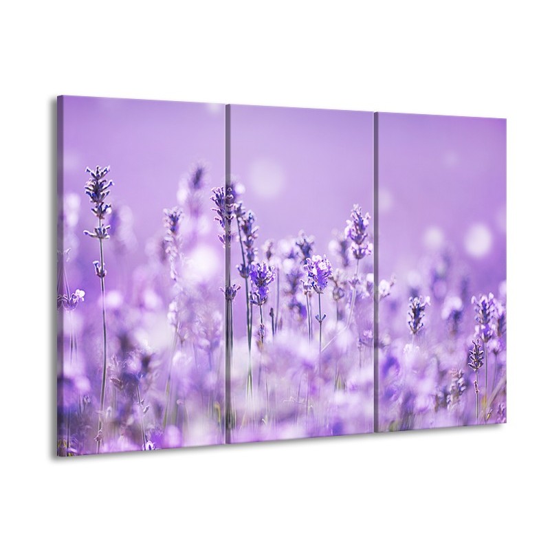 Glasschilderij Lavendel, Landelijk | Paars, Wit | 60x90cm 3Luik