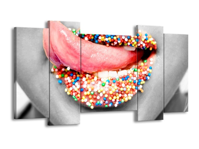 Glasschilderij Lippen, Tong | Grijs, Roze | 120x65cm 5Luik