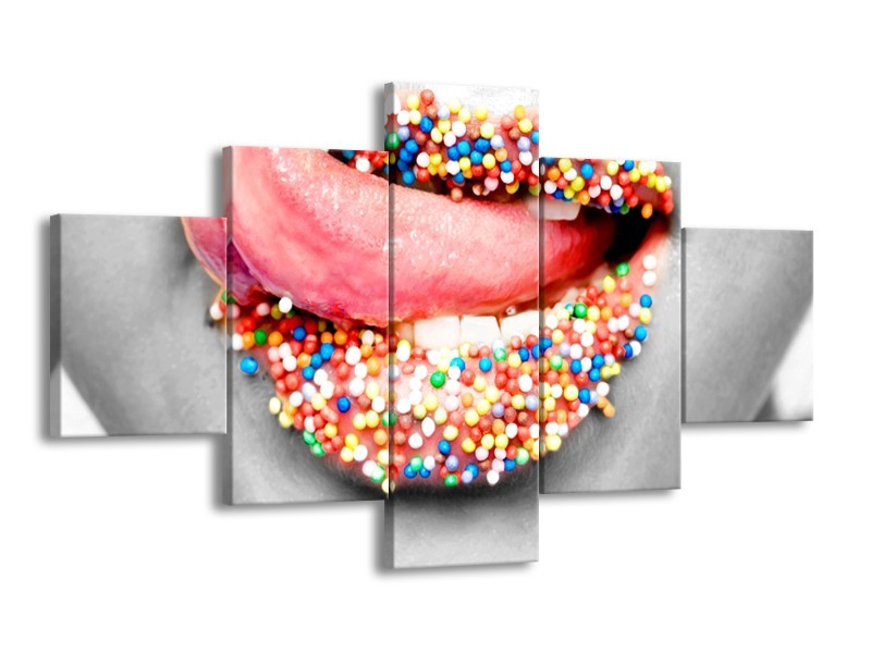 Glasschilderij Lippen, Tong | Grijs, Roze | 125x70cm 5Luik