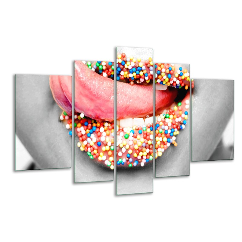 Glasschilderij Lippen, Tong | Grijs, Roze | 170x100cm 5Luik