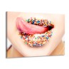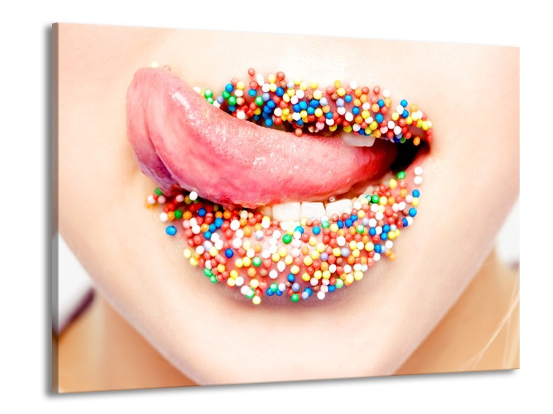 Glasschilderij Lippen, Tong | Roze, Crème, Blauw | 100x70cm 1Luik