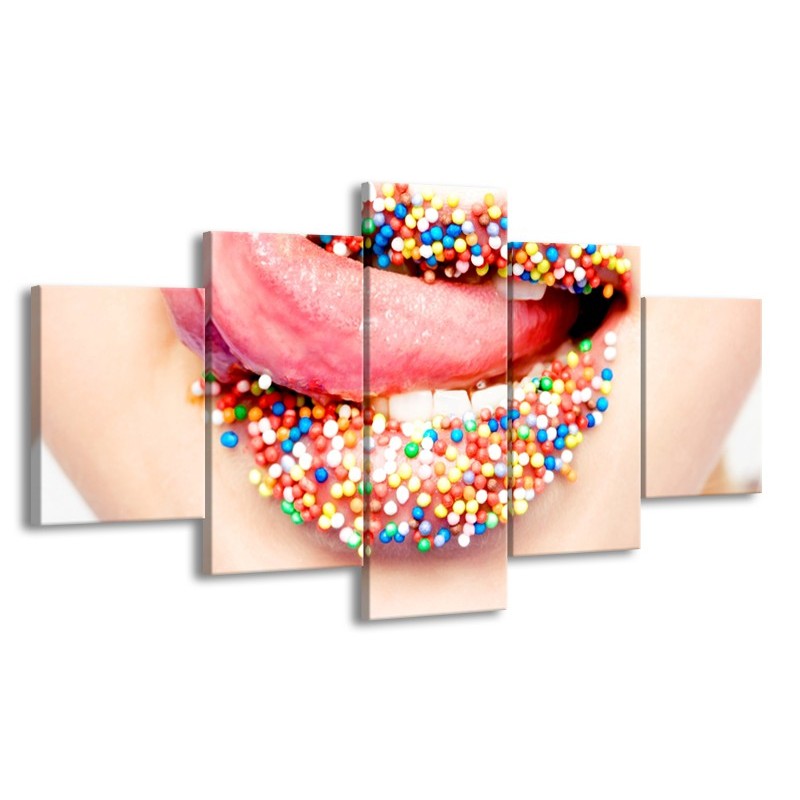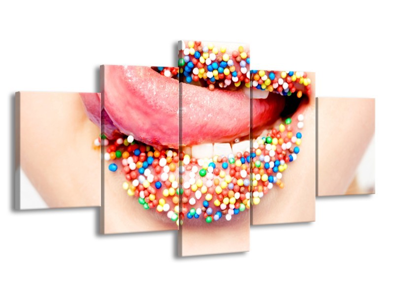 Glasschilderij Lippen, Tong | Roze, Crème, Blauw | 150x80cm 5Luik