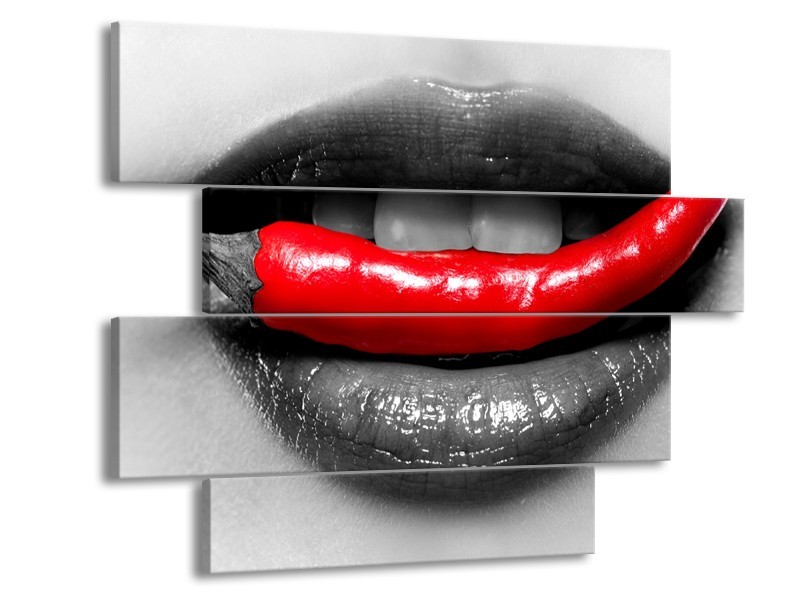 Glasschilderij Lippen, Vrouw | Grijs, Rood | 115x85cm 4Luik