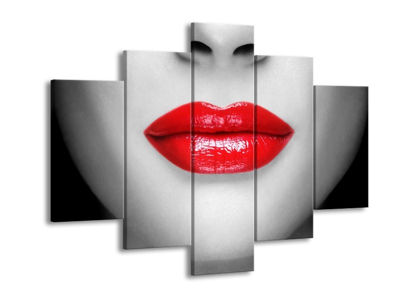 Glasschilderij Lippen, Vrouw | Grijs, Rood | 150x105cm 5Luik