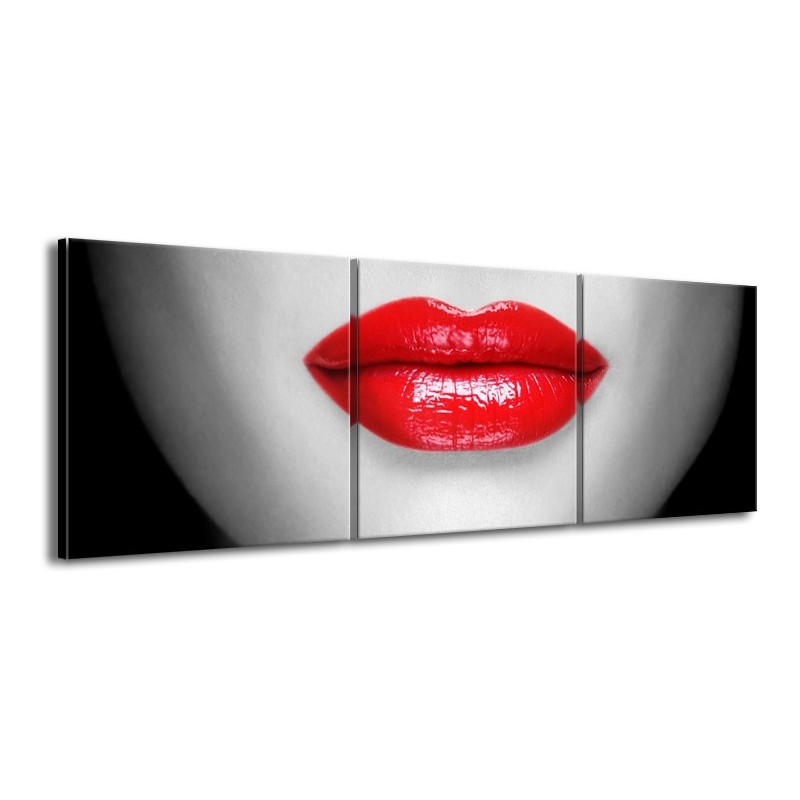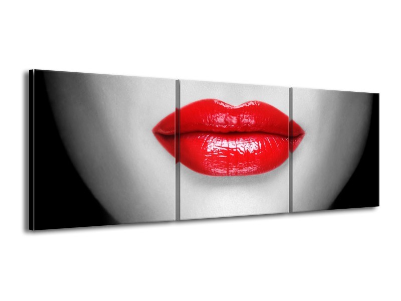 Glasschilderij Lippen, Vrouw | Grijs, Rood | 150x50cm 3Luik