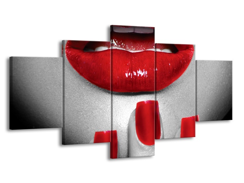 Glasschilderij Lippen, Vrouw | Grijs, Rood | 150x80cm 5Luik