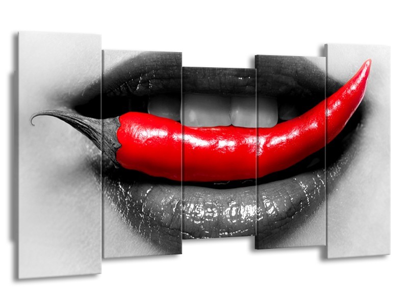 Glasschilderij Lippen, Vrouw | Grijs, Rood | 150x80cm 5Luik